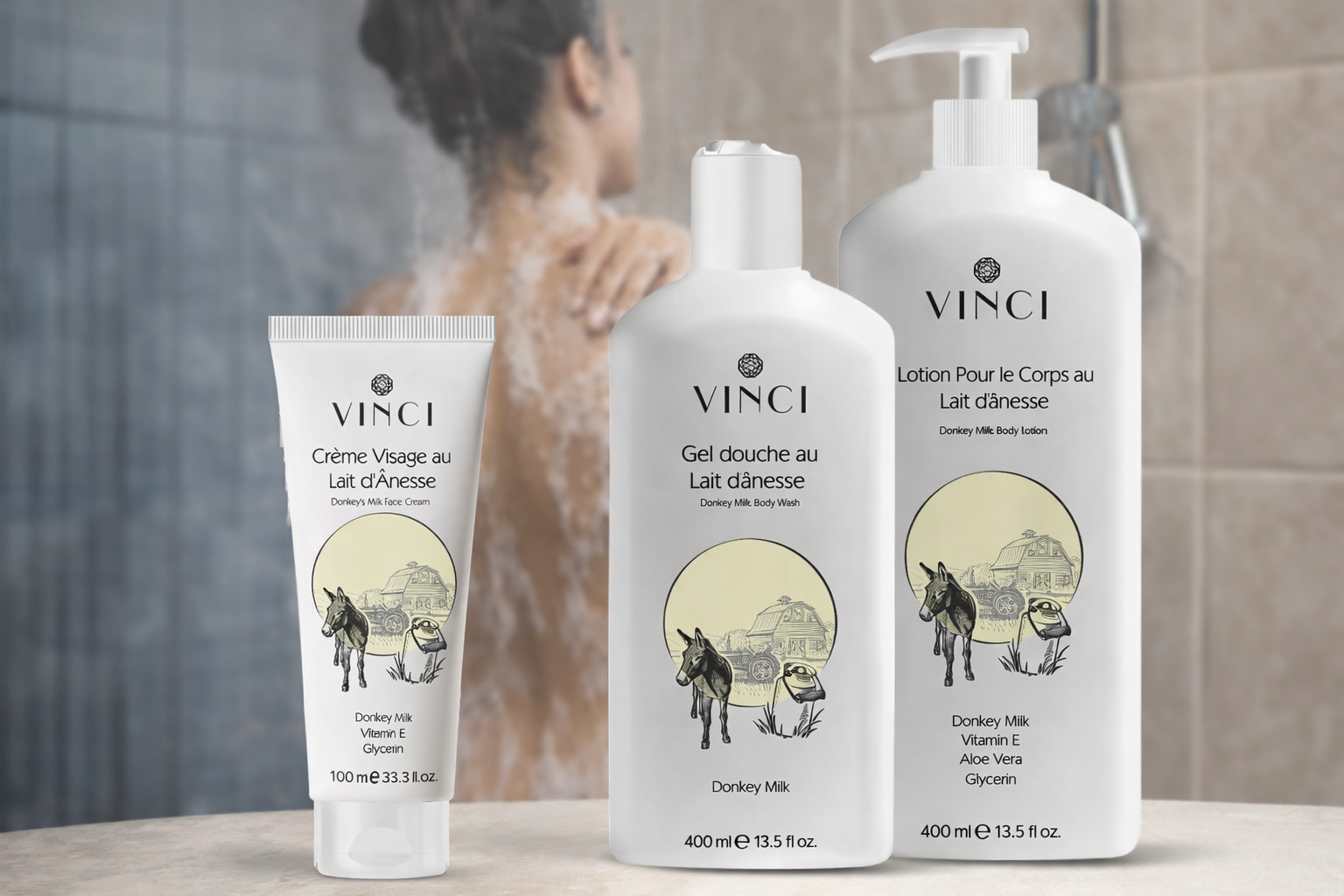 🧴 1. Gel Douche au Lait d’Ânesse – 400 ml